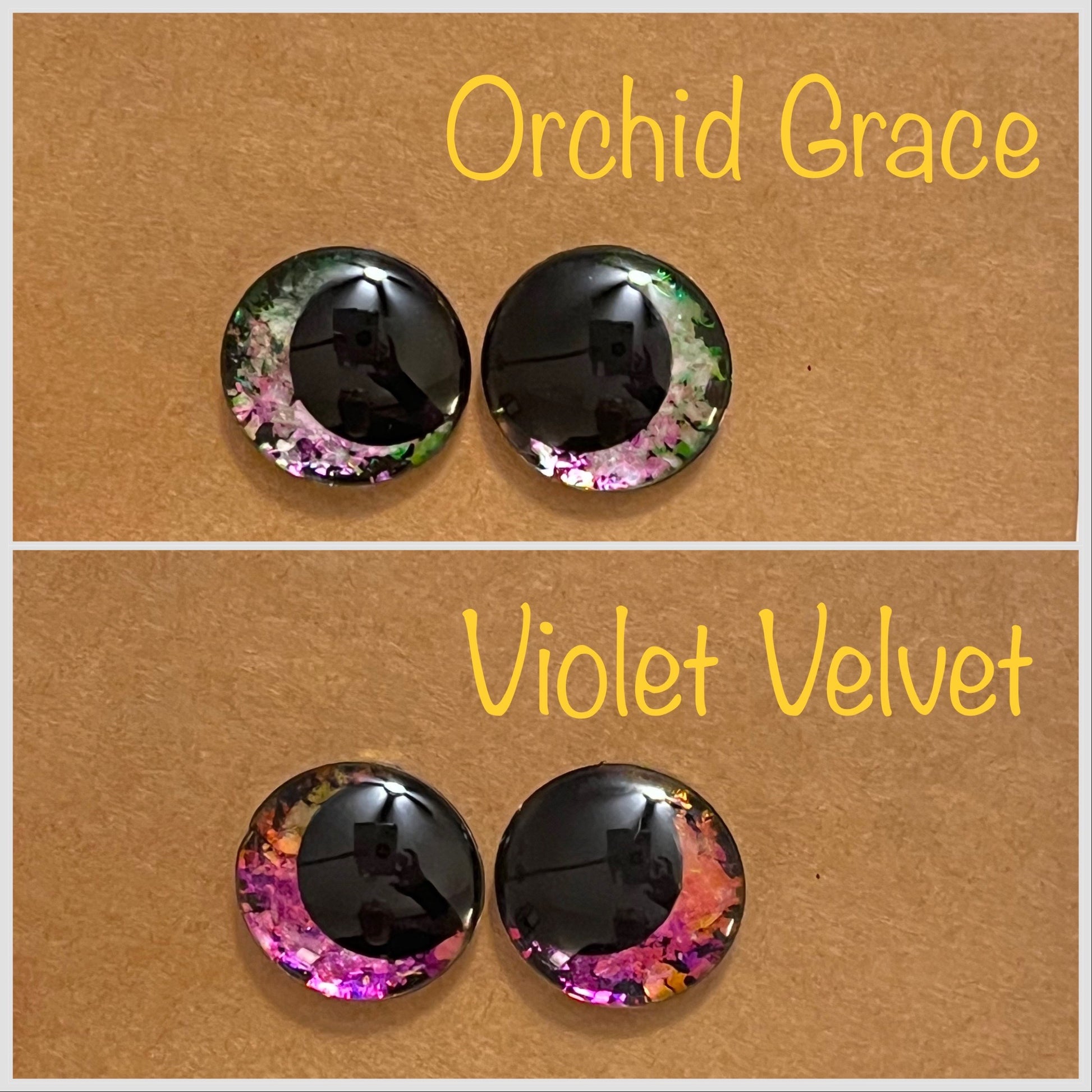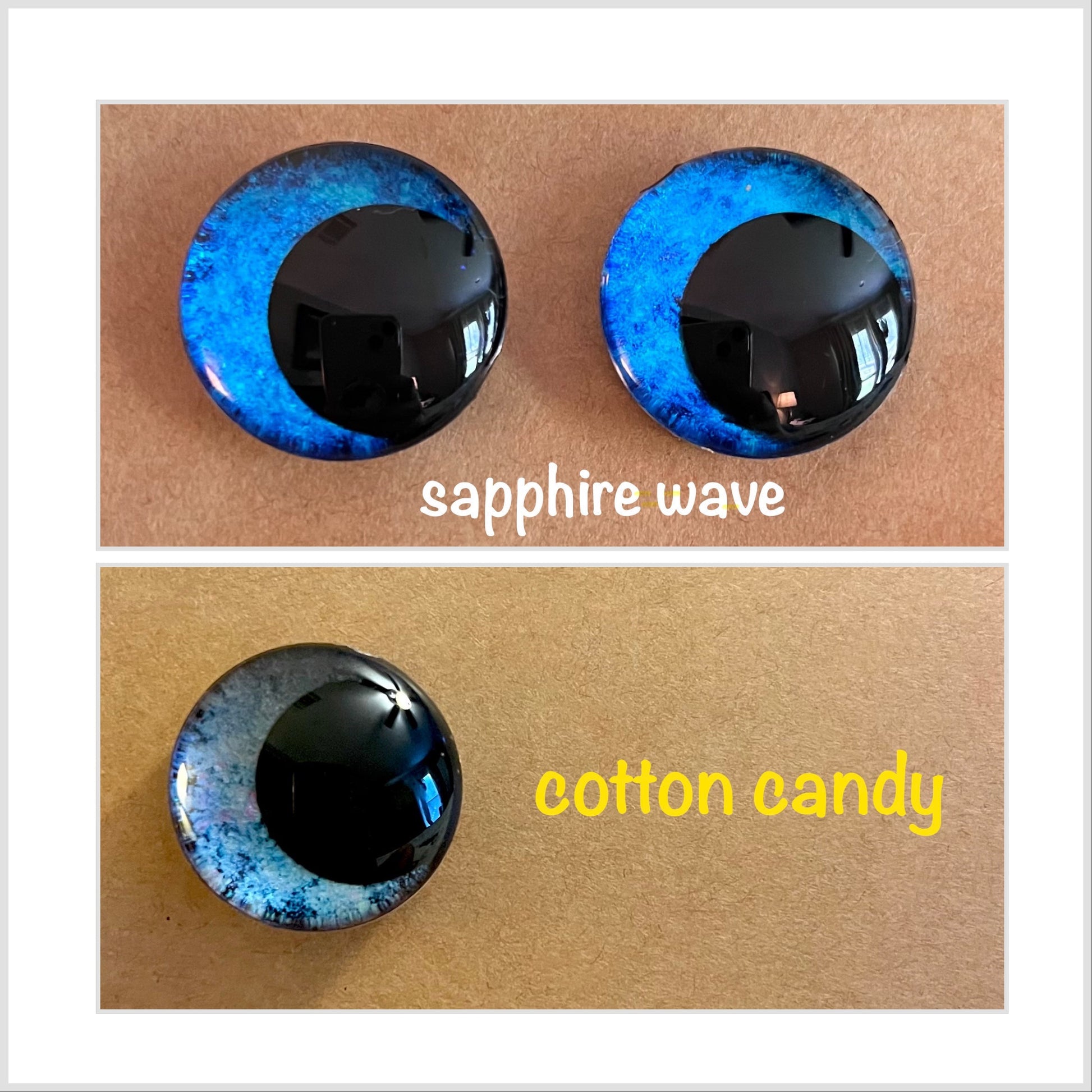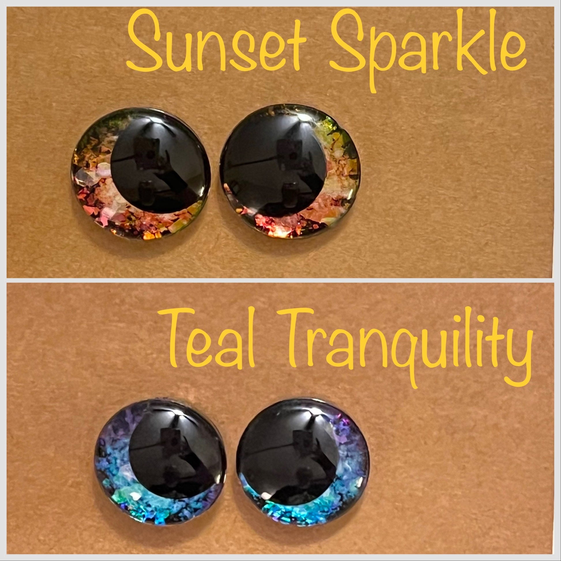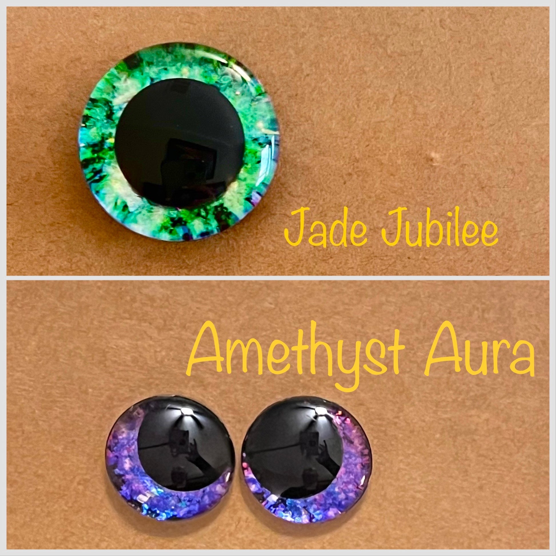 Unleash the magic in your crochet toys with our whimsical collection of hand-painted safety eyes. Each eye is meticulously crafted with a touch of enchantment, featuring holographic and iridescent colors that will captivate and delight. Available in a range of sizes, these eyes bring a mesmerizing sparkle and a dash of whimsy to your creations. Elevate your crochet toys to a whole new level of charm and wonder with our magical, hand-painted safety eyes. Explore our captivating selection and let your imagination soar! Prices are for one pair of sinker eyes with one pair of safety sinker backs.